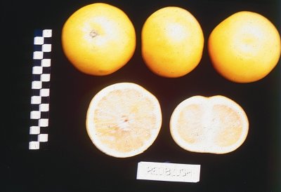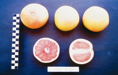 Amerika'da tomurcuk mutasyonu sonucunda elde edilmiştir. Meyve kabuğu pembemsi - sarı ve hafif pürüzlüdür. Kabuk meyve etine orta sıklıkta bağlıdır. Meyveler basık, yuvarlak, salkım şeklinde ve orta iriliktedir. Meyve eti rengi açık pembe veya pembedir (Şekil 18). Ağaç tacı içinde güneş görmeyen meyvelerde daha iyi renklenme meydana gelir. Meyveler birbirine değdiği yerde kırmızı yanak oluşur. Çekirdeksizdir.