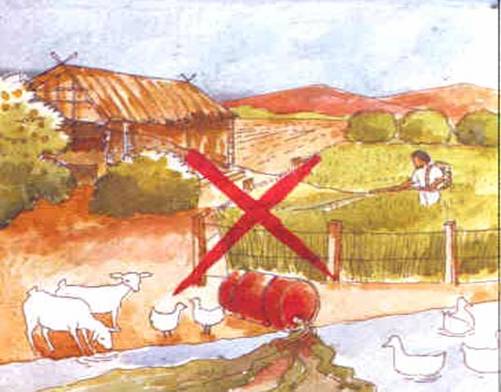 - İlaçlı bulaşık su tavukların dolaştığı yerlere, hayvanların otlaklarına serpilmemeli, asla su yalaklarına, durgun ve akar sulara boşaltılmamalıdır.